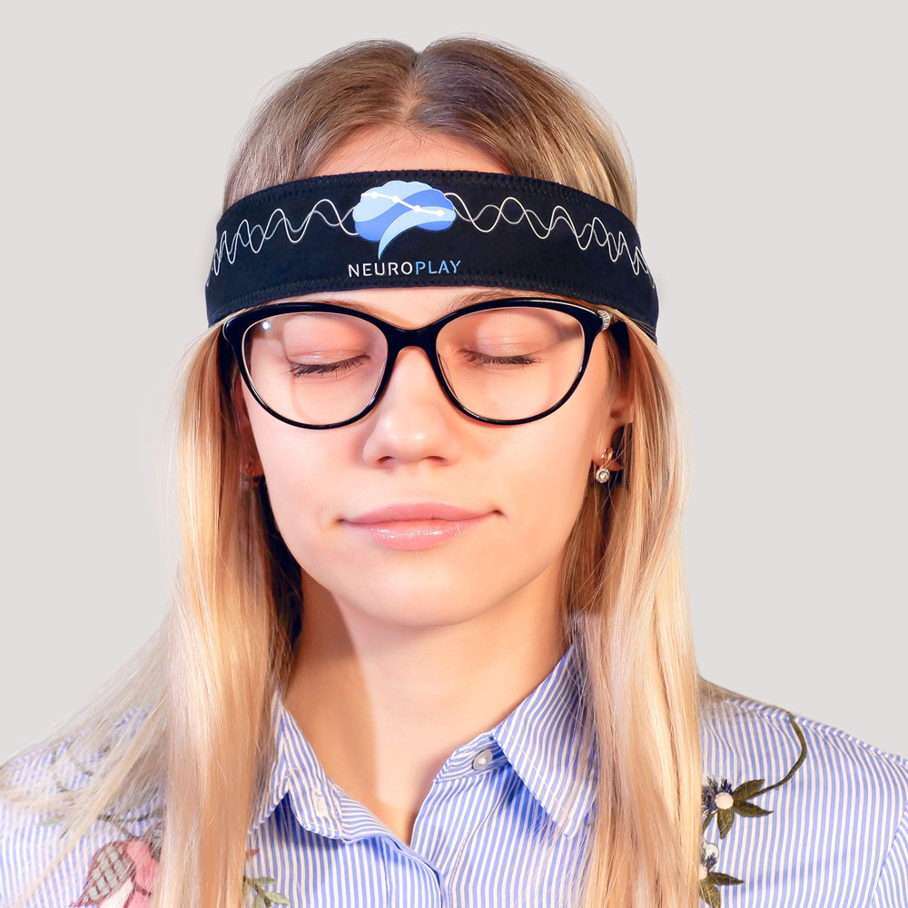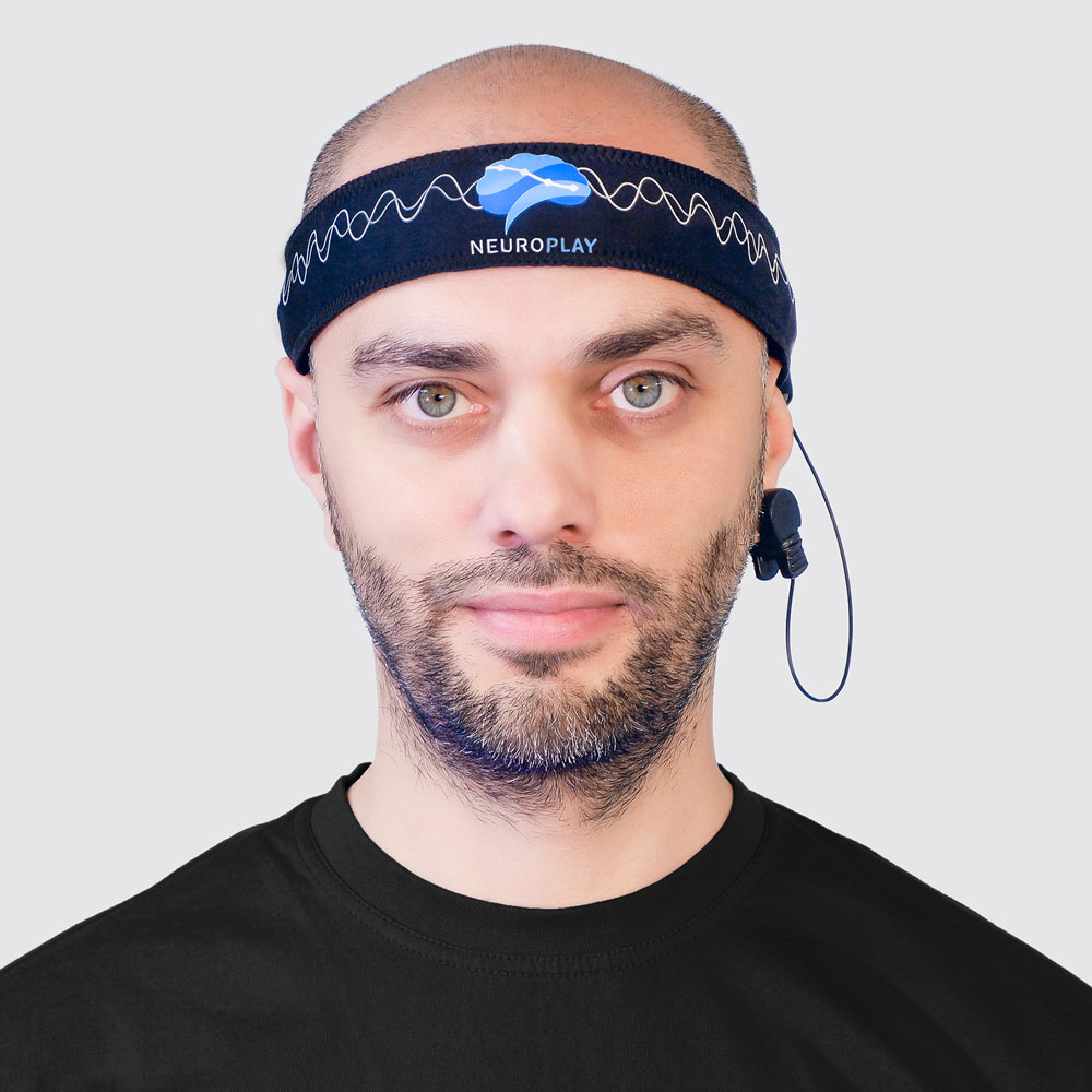 Нейрогарнитура NeuroPlay-6C — это шестиканальный мобильный беспроводной биоусилитель для съёма ЭЭГ, в форм-факторе повязки на липучке.
